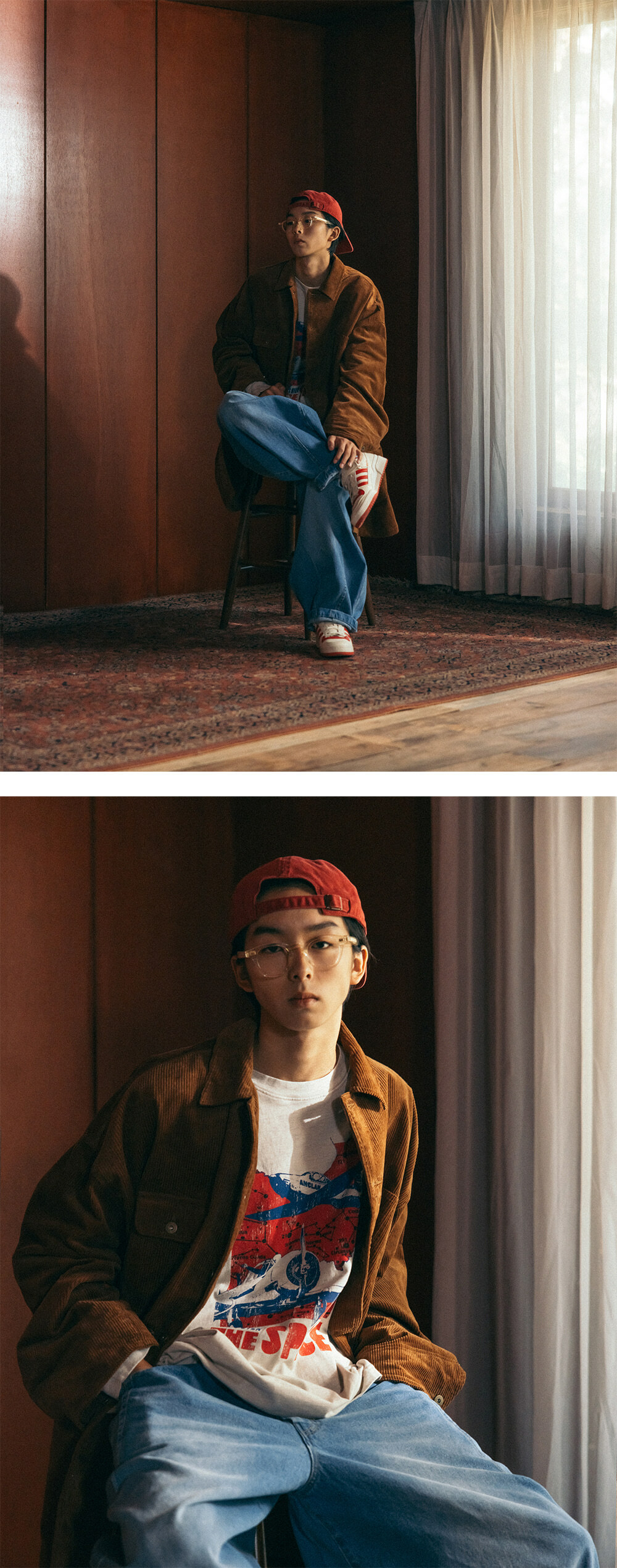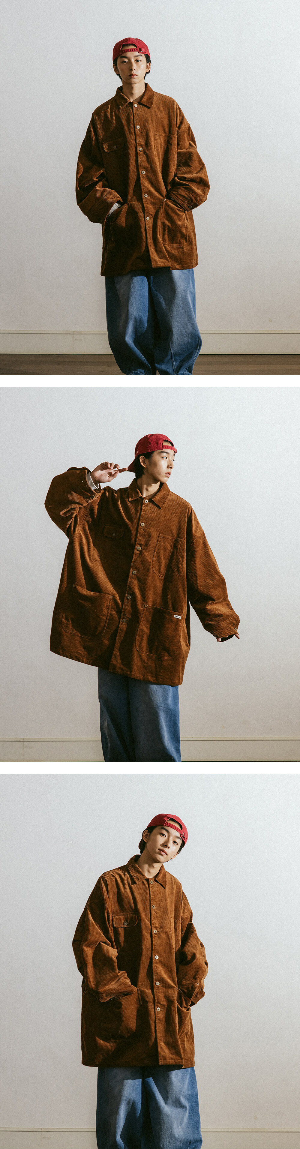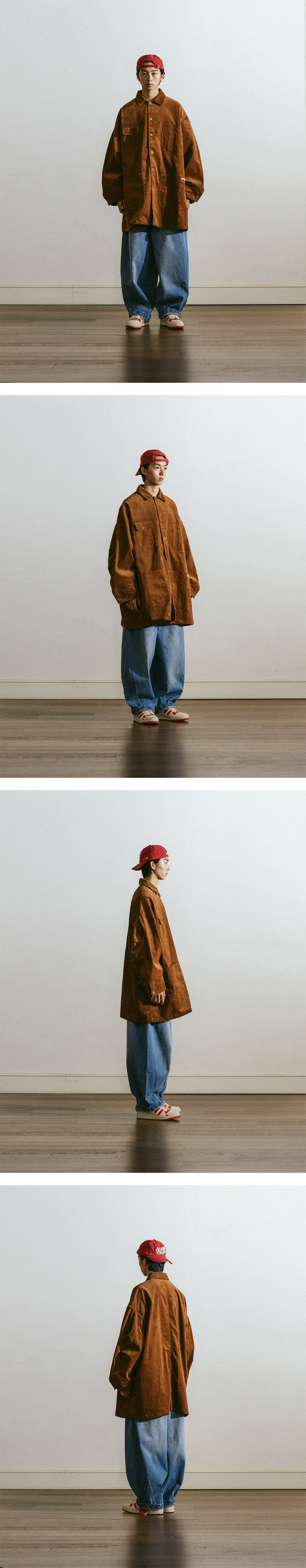* 寬鬆長版型的工裝襯衫外套