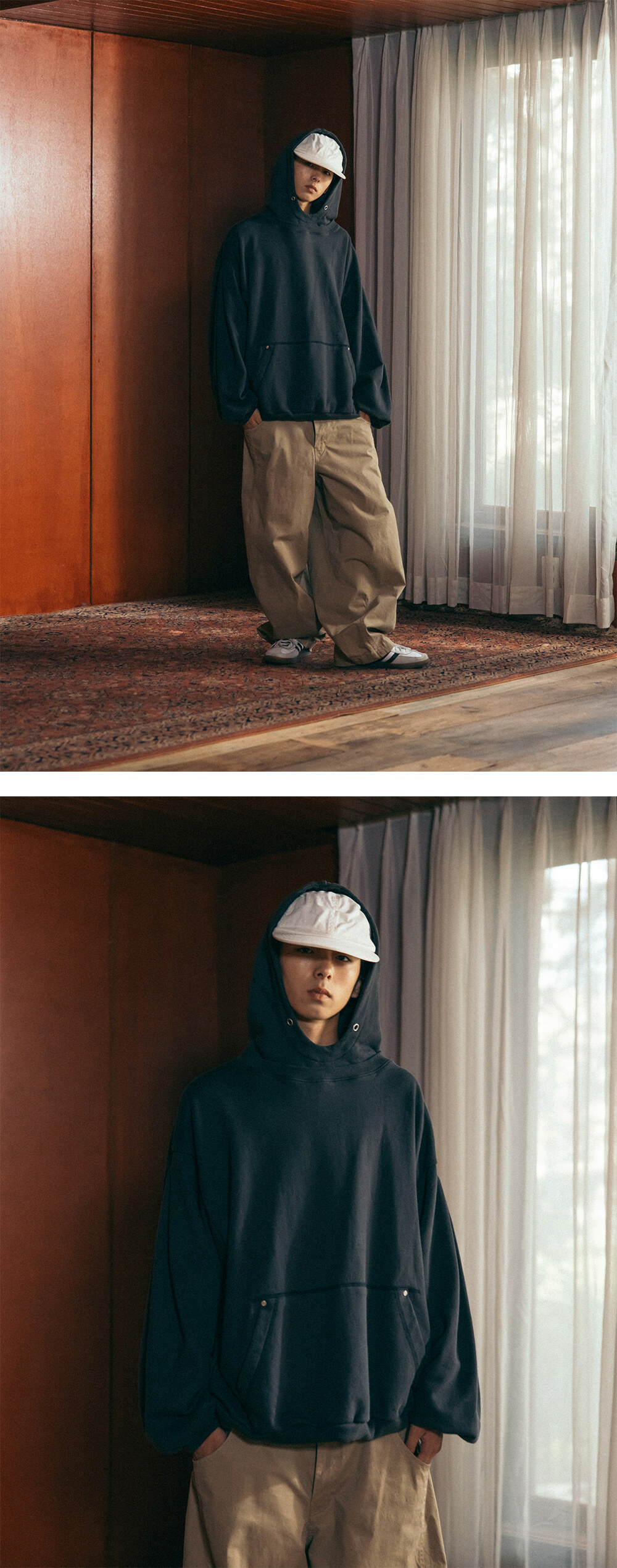現貨 ANGLAN Valley Layered Hoodie - Dark Grey 摺袖分層領口連帽上衣