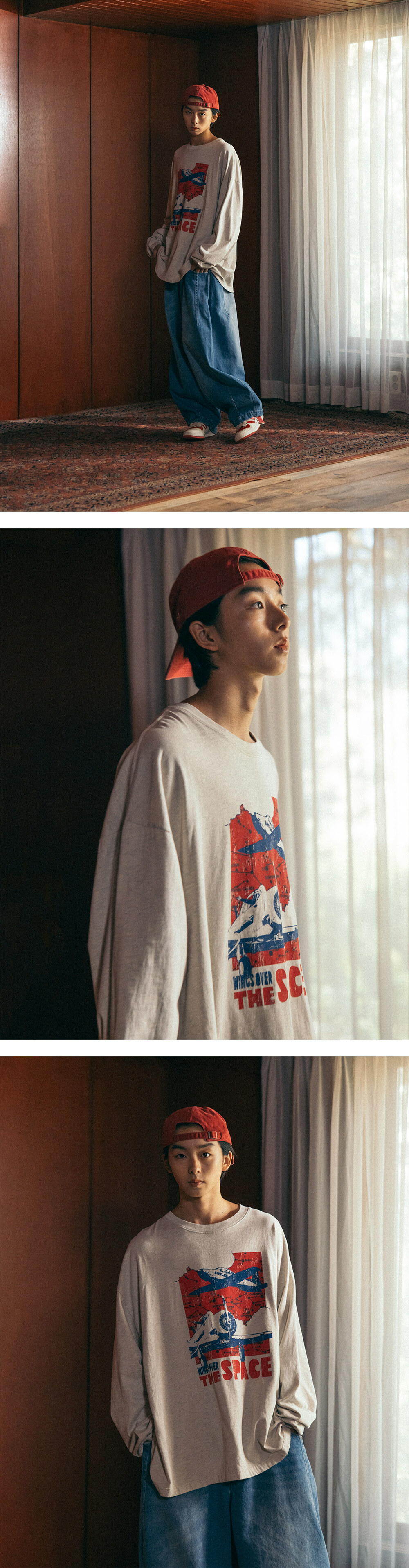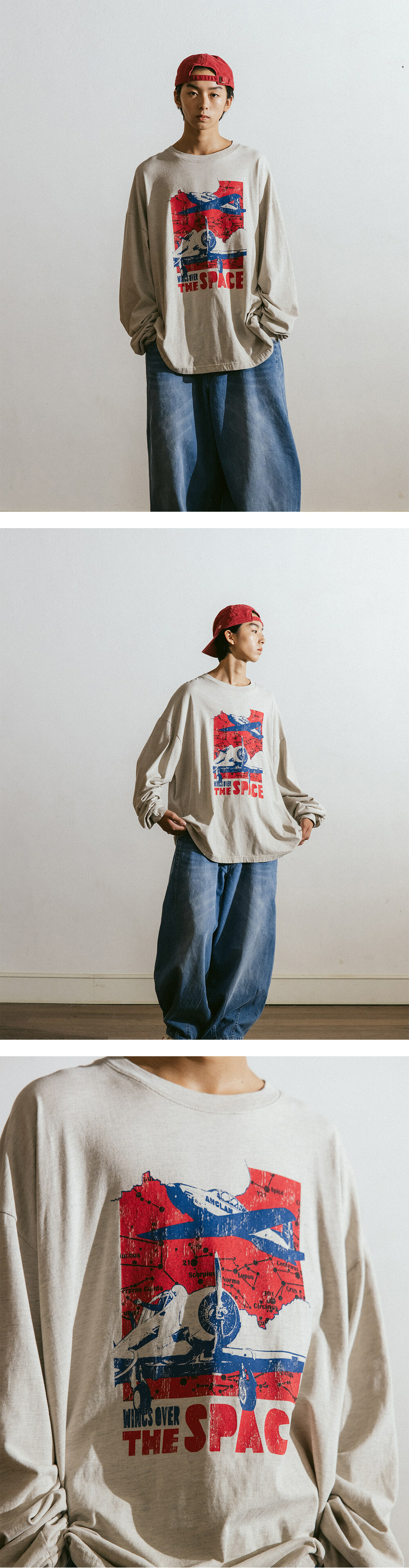 現貨 ANGLAN W.O.T.S Graphic Washed Long Sleeve - Oatmeal 裂紋印花水洗長袖上衣