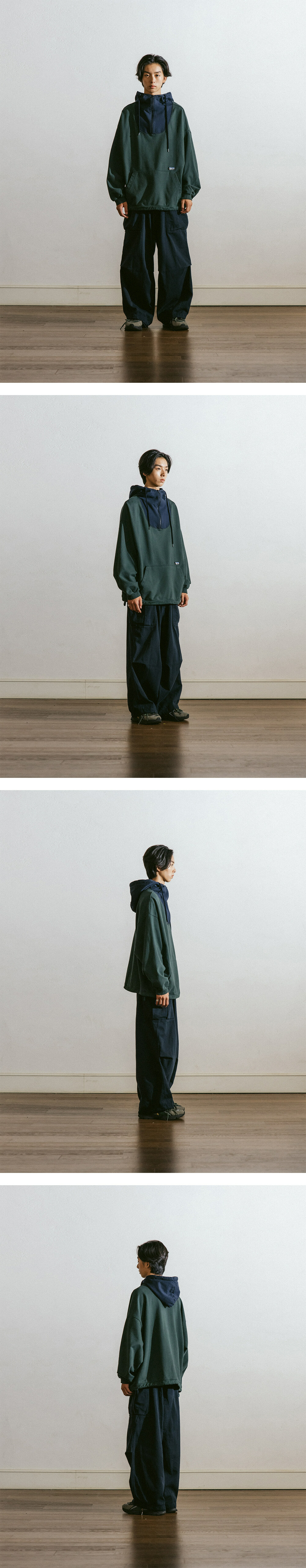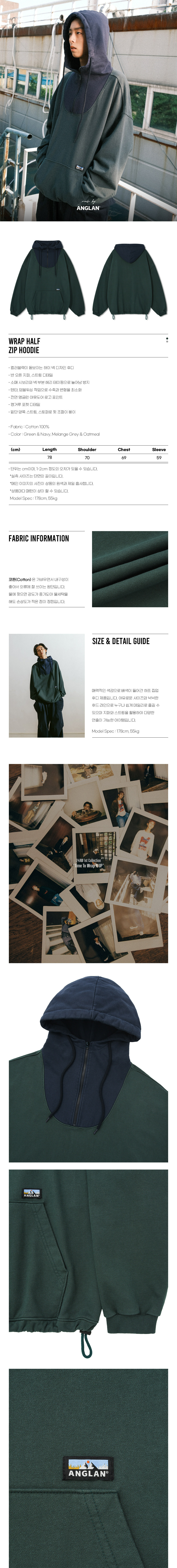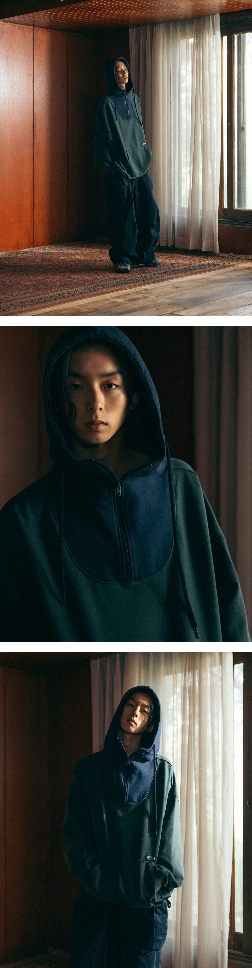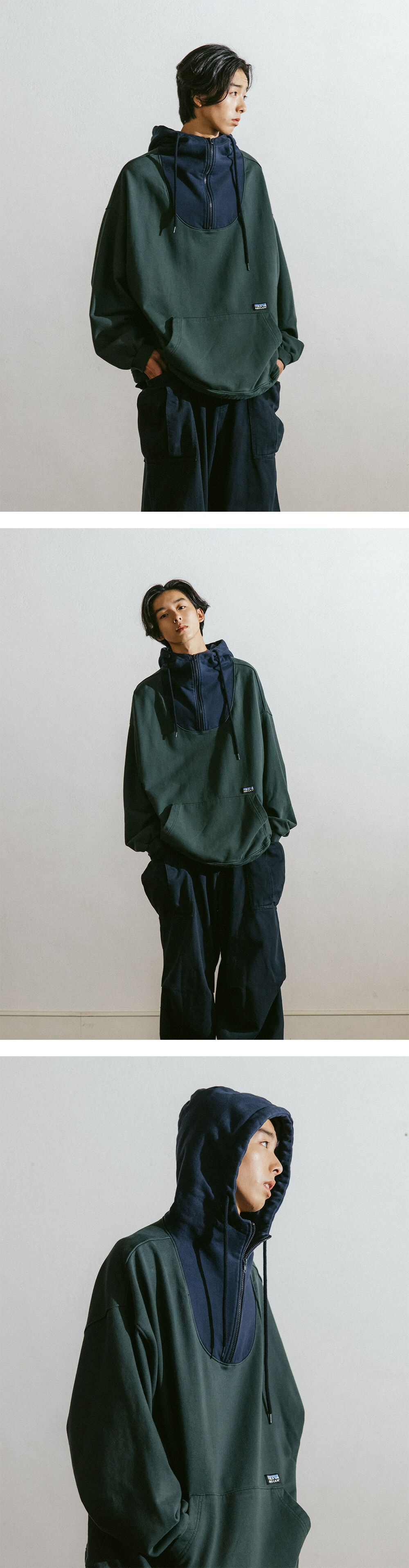 現貨 ANGLAN Wrap Half Zip Hoodie - Green & Navy 撞色半開拉鍊高領連帽上衣