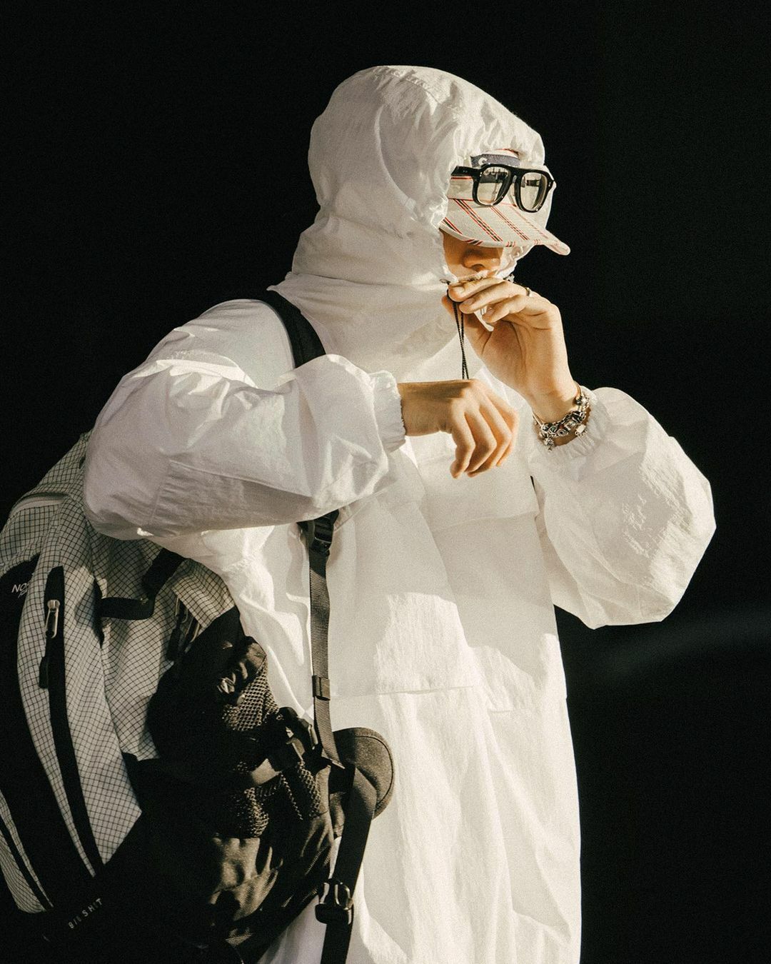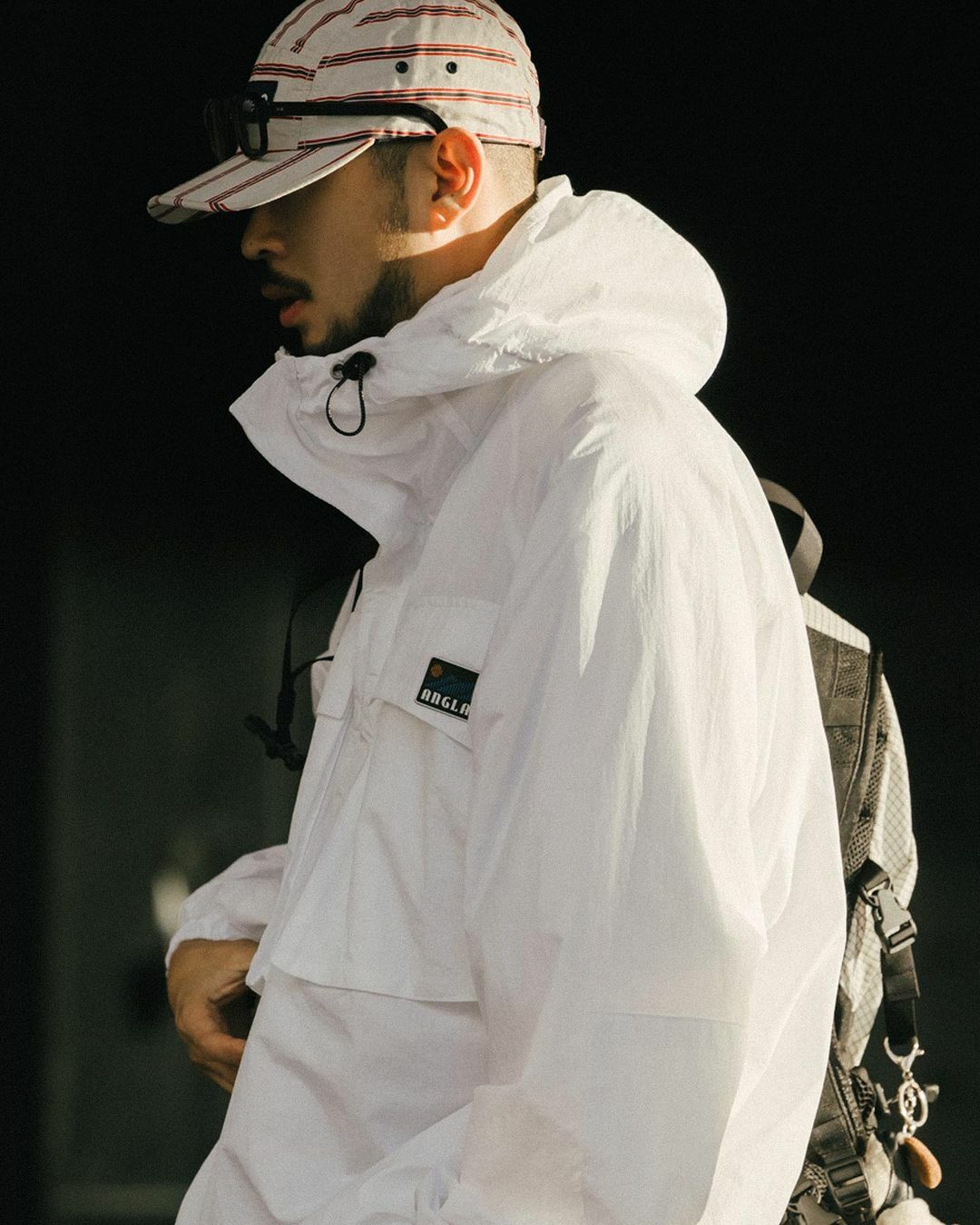 *前後配備了繩帶和扣子,可調整帽子的貼合度,領口同時具備拉鍊和按扣,方便穿脫